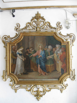 Naast schilderijen en beelden zijn er verschillende tafarelen op tegels geschilderd